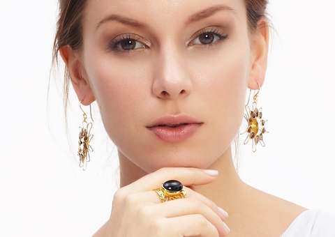 Anillo en Bronce Banado en Oro de 18k con Amatista